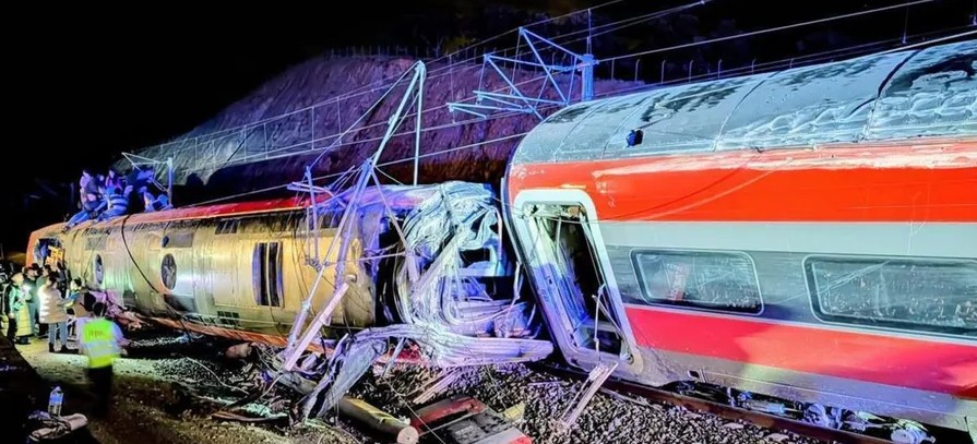 De acuerdo con los reportes preliminares, un tren de alta velocidad descarriló y posteriormente invadió la vía contraria, donde impactó contra otro convoy que circulaba en sentido opuesto. El choque provocó una intensa movilización de servicios de emergencia en la zona.