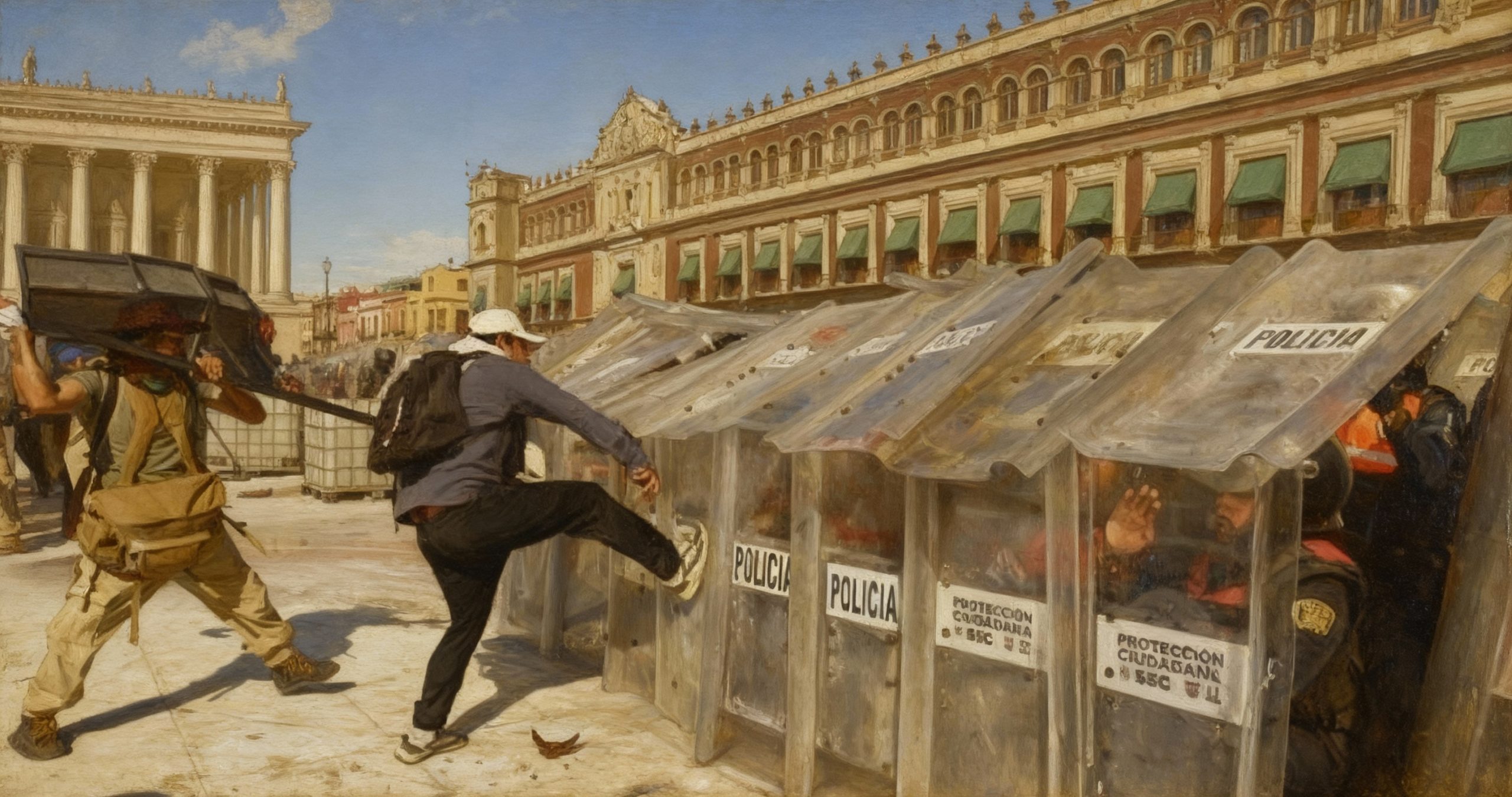 La movilización del 15 de noviembre nació como una protesta convocada por jóvenes contra la inseguridad y la violencia, con el sello de ser ciudadana y apartidista, pero terminó convertida en un campo de batalla simbólico por el sentido de la calle. El recorrido, que avanzó desde el Ángel de la Independencia, se tensó al llegar al Zócalo, donde se reportaron empujones, daños a infraestructura y forcejeos en torno a las vallas colocadas frente a Palacio Nacional y la Suprema Corte de Justicia de la Nación.