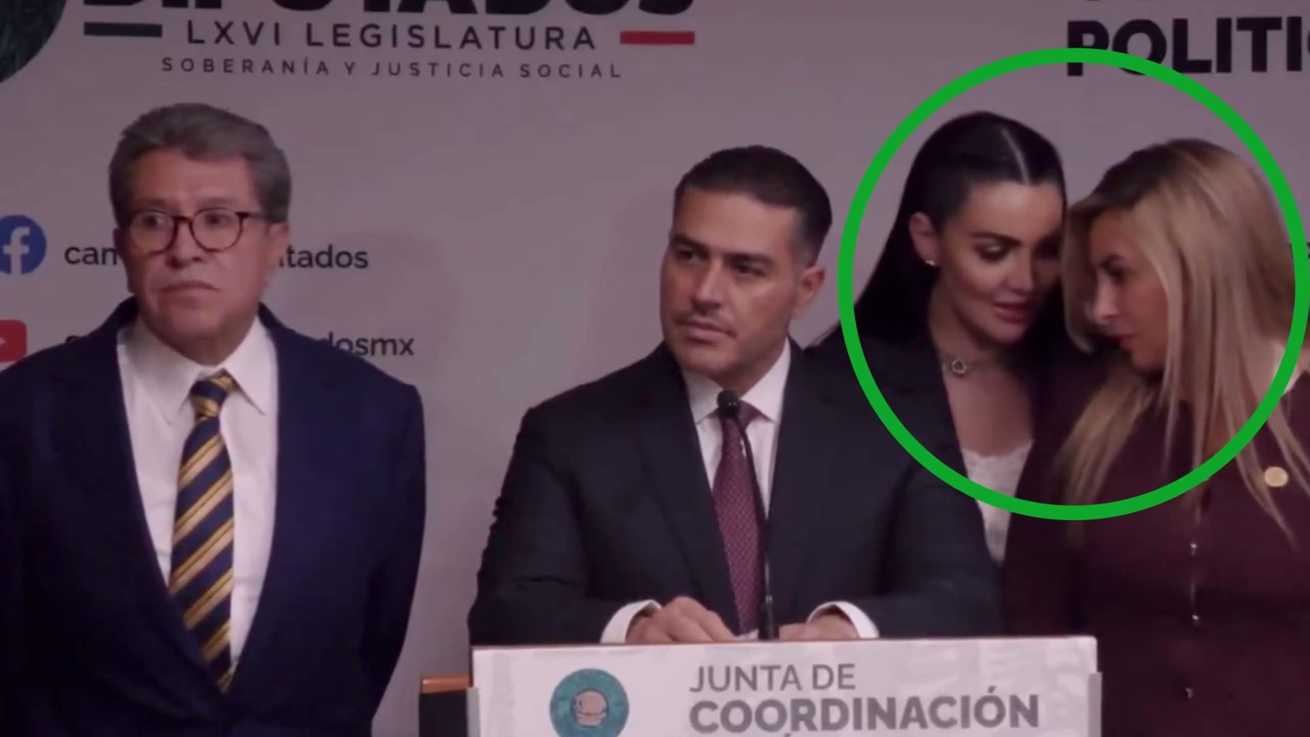 Monreal pidió a Jiménez colocarse a su lado, pero Saiden se negó a moverse. En video se observa cómo ambas intercambian miradas tensas mientras el coordinador ríe sin intervenir.