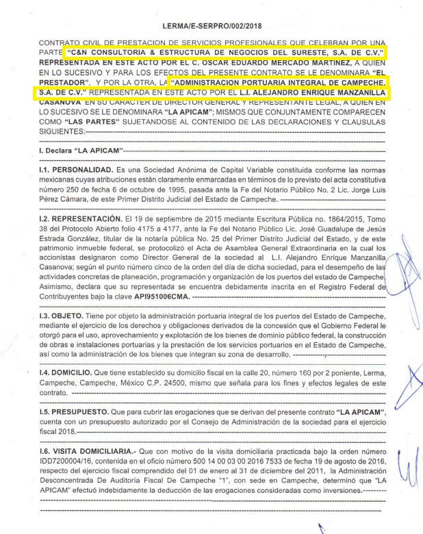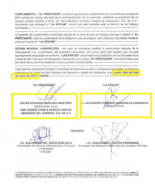 Durante la firma de los contratos, Alejandro Moreno era presidente de la Junta de Gobierno de Apicam. Tampoco se encontraron evidencias de que los servicios se hayan prestado.