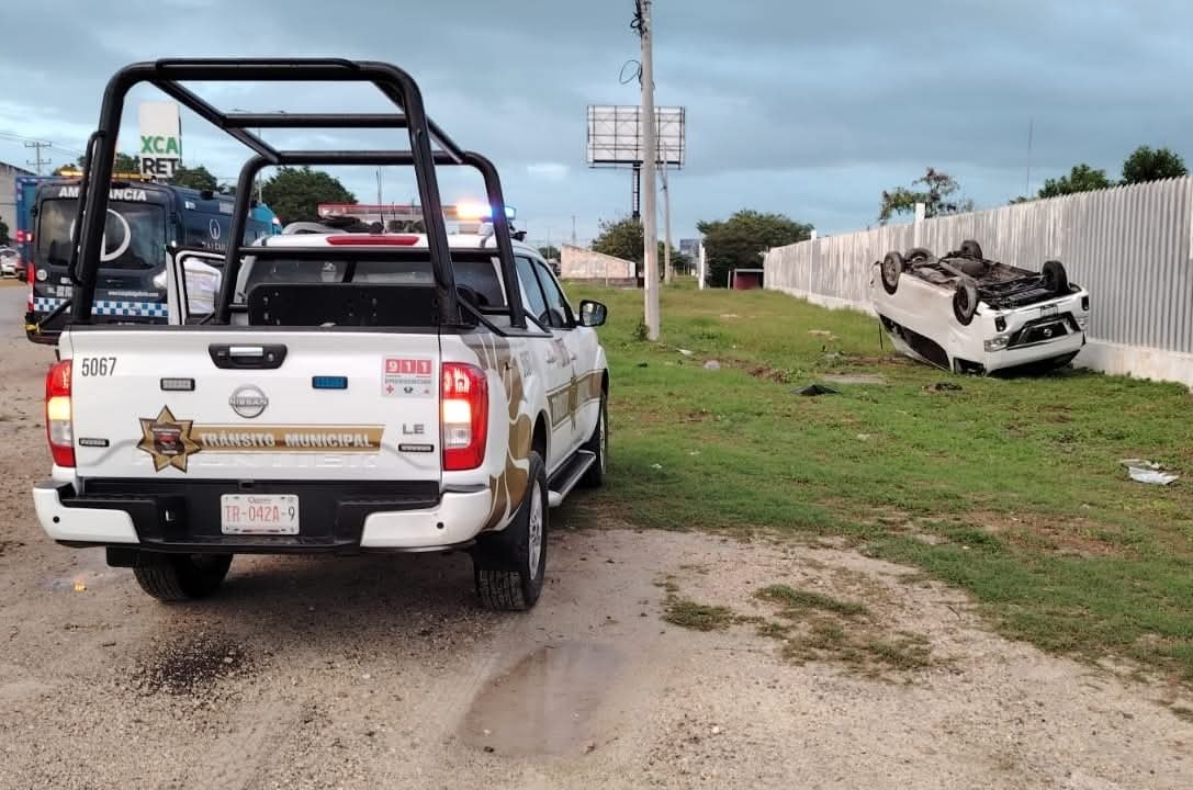 Accidente vial en el bulevar Colosio deja una camioneta volcada y solo daños materiales, luego de que la mañana de este martes una unidad tipo Nissan Urvan se saliera de la carpeta asfáltica y terminara volcada a un costado de la vía, a la altura de la Universidad Tecnológica de Cancún.