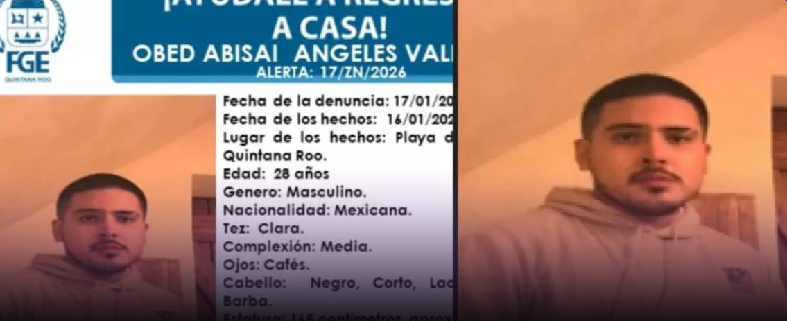 De acuerdo con la información disponible, el joven fue visto por última vez en esta ciudad del municipio de Solidaridad, sin que hasta el momento se tenga conocimiento de su paradero. Tras el reporte de desaparición, familiares solicitaron el apoyo de las autoridades para intensificar su localización.