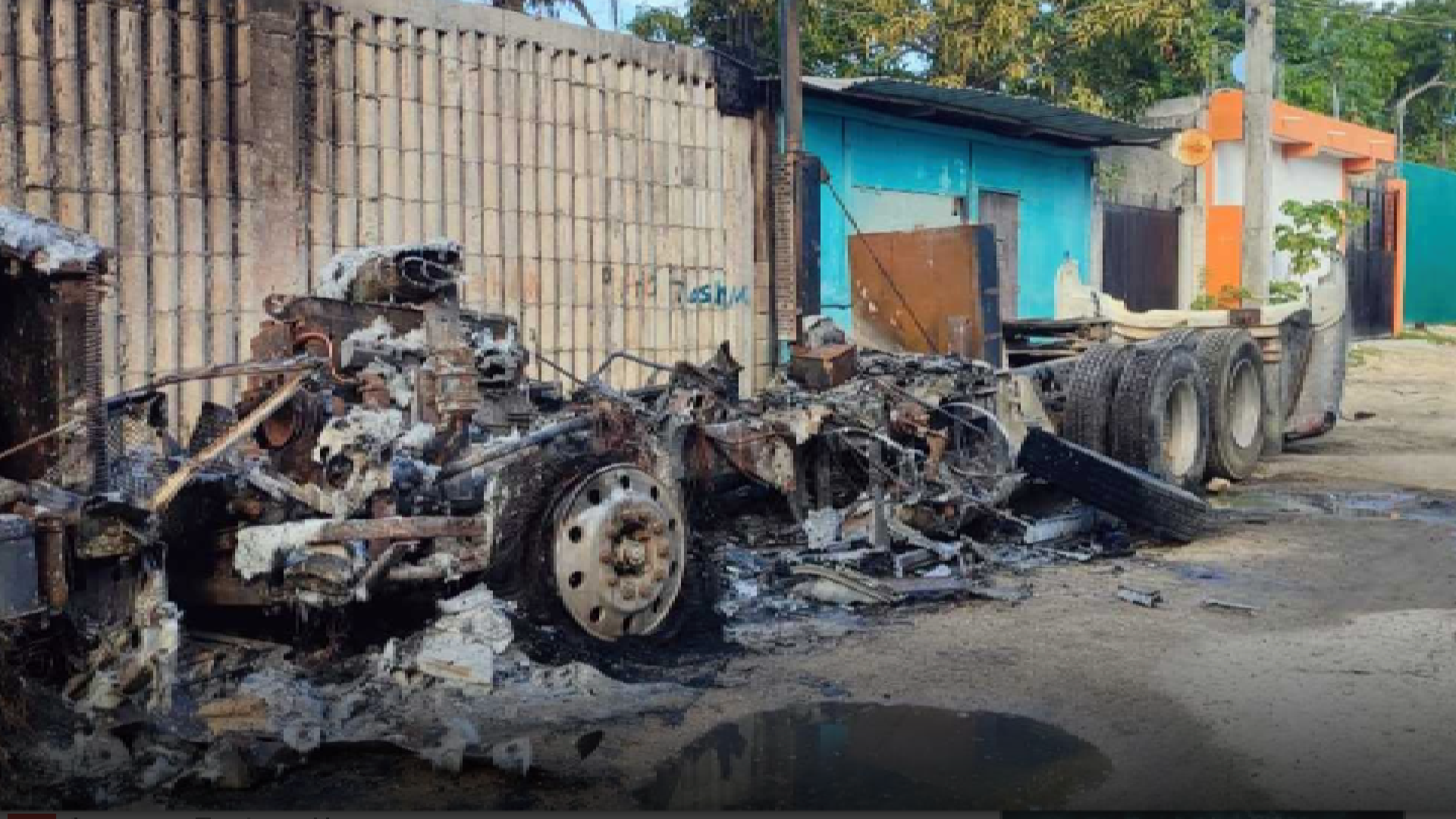 En Playa del Carmen atacan piromaníacos dos tráileres