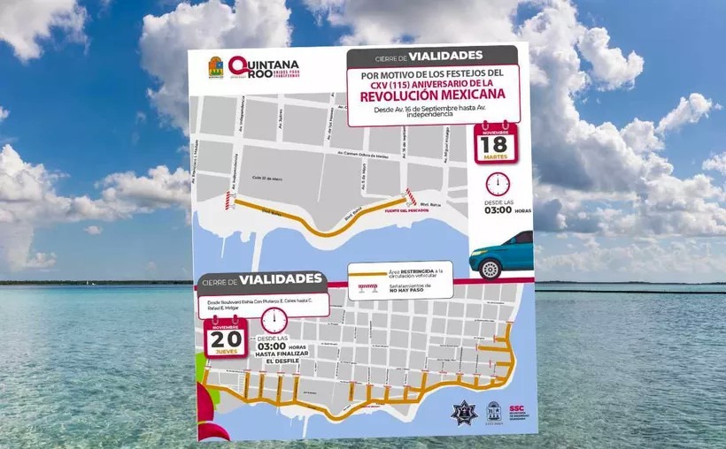 La capital de Quintana Roo aplicó cierres viales por desfile con motivo del 115° Aniversario de la Revolución Mexicana, una medida que modificó la movilidad desde el 18 de noviembre y que continuará durante la jornada del evento principal. Las autoridades estatales y municipales señalaron que los ajustes buscan garantizar un desarrollo ordenado y seguro del Desfile Cívico-Deportivo en Chetumal, que este año tendrá un cambio histórico en su logística.