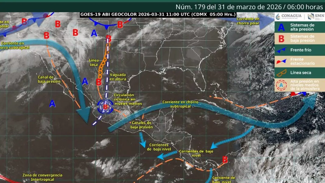 El clima en Quintana Roo hoy 31 de marzo de 2026 trae un canal de baja presión (sistema atmosférico que genera inestabilidad) que provoca lluvias y chubascos con actividad eléctrica en gran parte del estado. Además, se esperan temperaturas máximas de hasta 36°C en Lázaro Cárdenas con sensaciones térmicas de 39°C. Vientos fuertes de 40 a 60 km/h azotarán las costas junto con oleaje de hasta 6 pies. La Coordinación Estatal de Protección Civil advierte precauciones por estos cambios bruscos.
