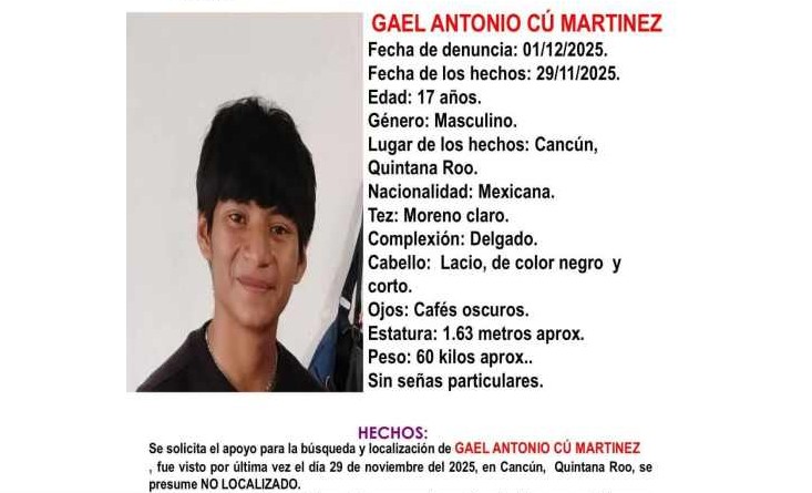 Confirman identidad de joven hallado sin vida en Supermanzana 260 de Cancún: la Fiscalía General del Estado informó la madrugada de este martes que el cuerpo encontrado la noche anterior corresponde a Gael Antonio, un adolescente de 17 años que estaba desaparecido desde el fin de semana.