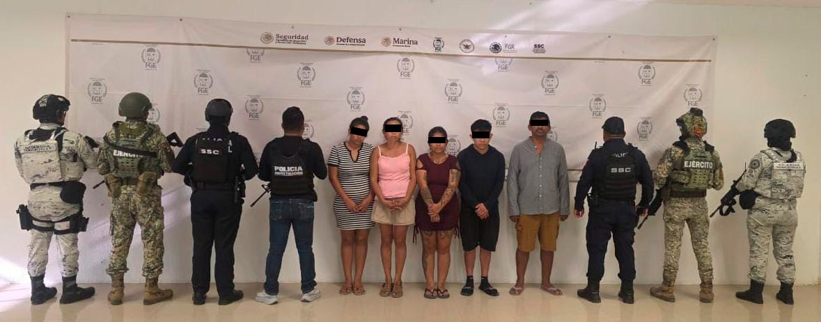 Como resultado de un operativo inmediato, la Fiscalía General del Estado, en coordinación con elementos del Grupo Interinstitucional, logró la captura de seis personas sospechosas de participar en el homicidio: tres hombres y tres mujeres.