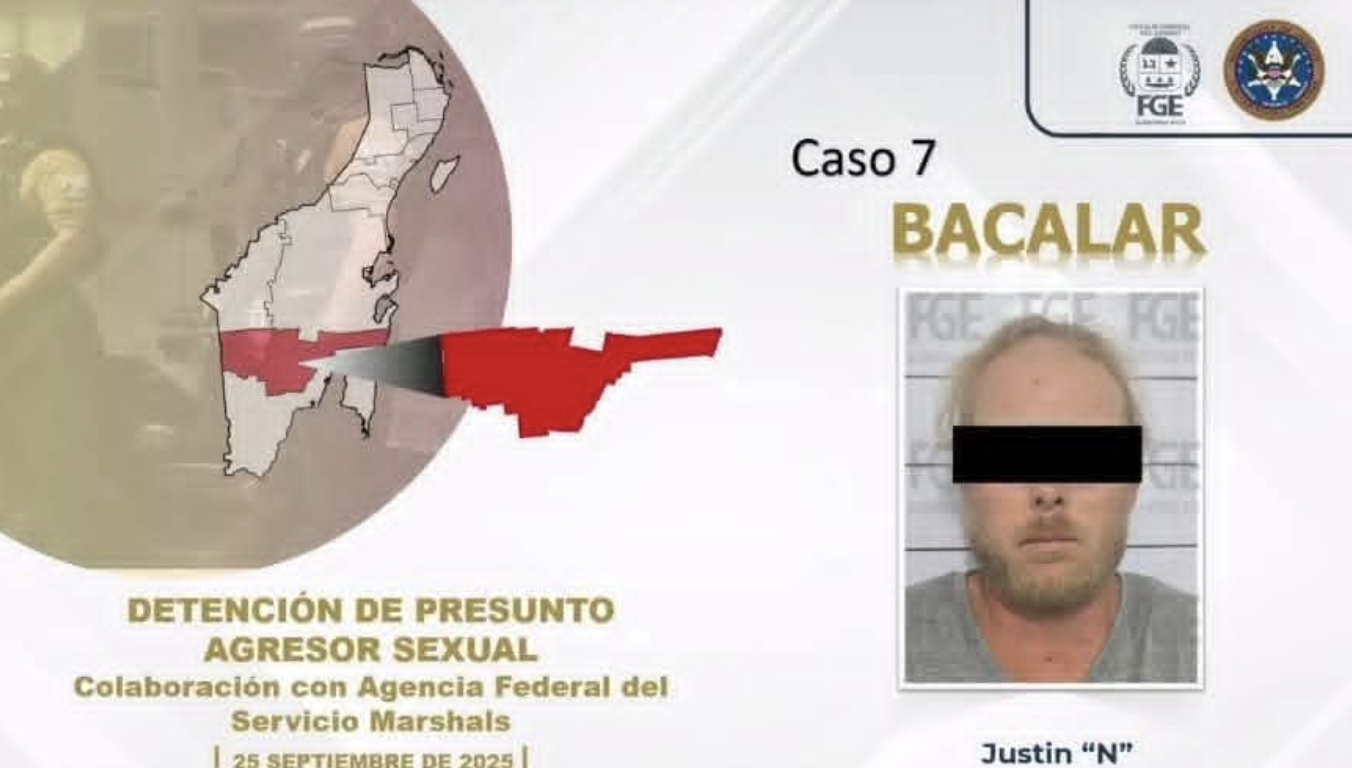 La detención se realizó el pasado 25 de septiembre en la cabecera municipal de Bacalar, gracias a la coordinación con el organismo estadounidense U.S. Marshals Service.