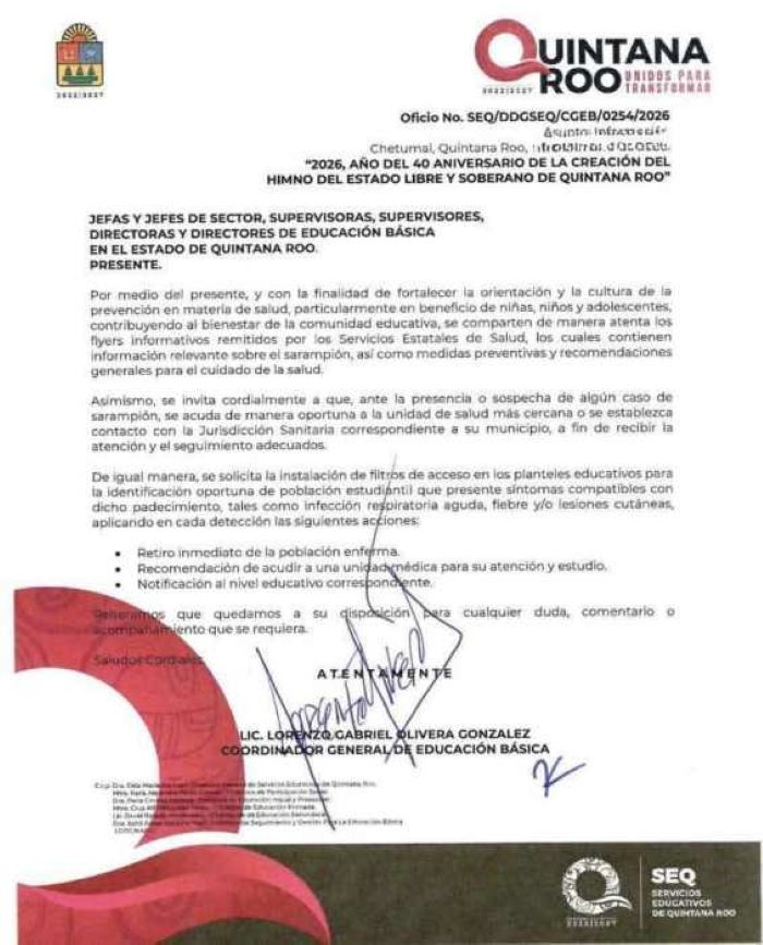 Filtros sanitarios en escuelas Quintana Roo marcan diferencia ante 15 casos de sarampión. Vacunación masiva y detección temprana evitan brotes mayores. Padres, maestros y autoridades suman esfuerzos por la salud infantil. Digital News QR sigue estos temas clave en Quintana Roo. Comparte si conoces escuelas con filtros activos o cuéntanos tu experiencia en comentarios. Juntos vigilamos el bienestar de las nuevas generaciones.