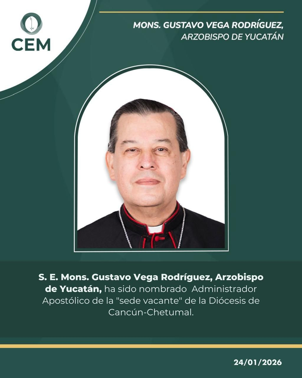 Gustavo Rodríguez Vega asumió como administrador apostólico de la Diócesis de Cancún-Chetumal. El Arzobispo de Yucatán recibió el nombramiento del Papa León XIV tras el fallecimiento de monseñor Pedro Pablo Elizondo. La Conferencia Episcopado Mexicano lo anunció en un comunicado oficial. Esta designación asegura la continuidad en la sede vacante de Quintana Roo. Además, prepara el camino para el nuevo obispo Salvador González Morales. El Vaticano emitió el decreto el 22 de enero de 2026. De esta forma, la Iglesia Católica en la región mantiene su labor pastoral sin interrupciones.