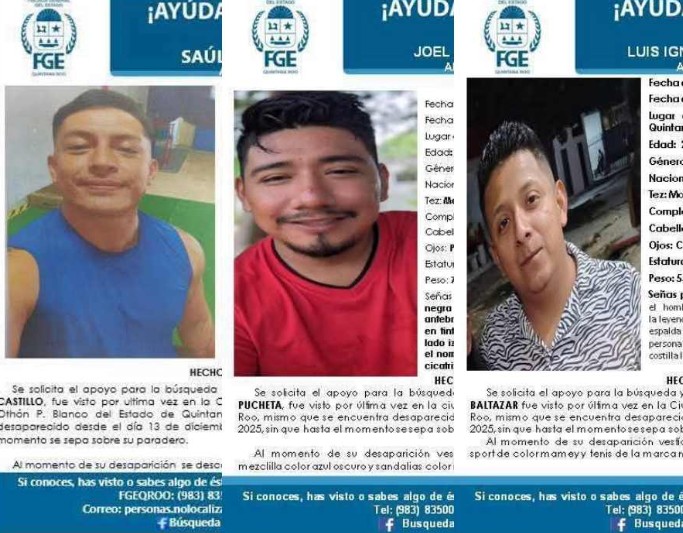 Además, se emitieron dos reportes de desaparición en el municipio de Felipe Carrillo Puerto, correspondientes a Luis Ignacio Cuxim Baltazar, de 36 años, y Joel Baltazar Pucheta, de 31 años. Información extraoficial indica que ambos también habrían sido privados de la libertad, aunque esta versión no ha sido confirmada por las autoridades.