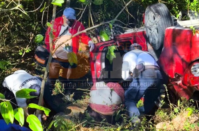Elementos de Seguridad Ciudadana se desplazaron al lugar y localizaron un Chevrolet Sonic LTZ, color rojo, volcado sobre su costado izquierdo y a pocos metros del campamento cristiano. En su interior se encontraba atrapada la conductora, identificada como Alejandra Gabriela Cruz Mendoza, con domicilio en Mahahual.