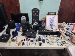 Durante la revisión, las autoridades encontraron y decomisaron una gran variedad de artículos prohibidos, entre los que destacan: