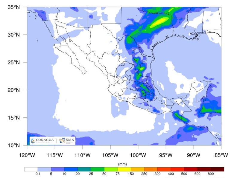 En Chihuahua noreste, Coahuila norte, Nuevo León norte y Tamaulipas noroeste, se forman torbellinos. Rachas de 40 a 60 km/h impactan Baja California Sur, Durango y Sinaloa. Mientras tanto, en la Península de Yucatán persisten las lluvias aisladas. Por lo tanto, el fenómeno nacional influye indirectamente en Quintana Roo mediante humedad adicional.