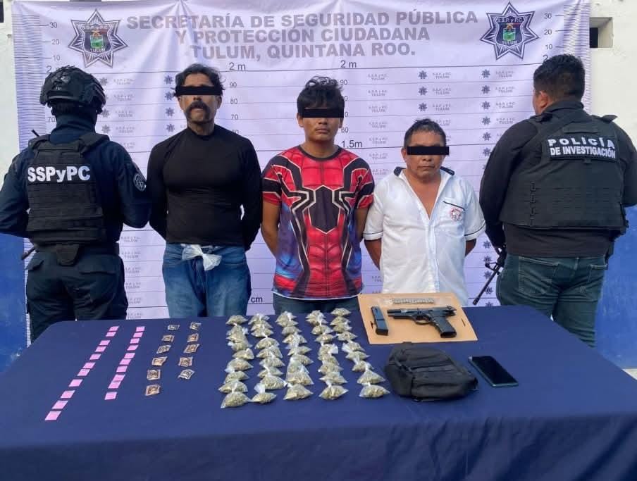 La intervención se llevó a cabo la tarde del miércoles 20 de agosto sobre la avenida Tulum, entre las calles Centauro y Orión, en la colonia Centro. En el lugar fueron detenidos Jorge Alexander “N”, de 18 años; Julio César “N”, de 41 años; y Jesús “N”, de 54 años.