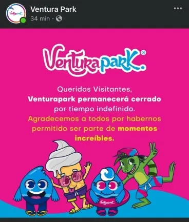 En su publicación, Ventura Park expresó: “Queridos visitantes: Ventura Park permanecerá cerrado por tiempo indefinido; agradecemos a todos por habernos permitido ser parte de momentos increíbles”. Este mensaje, acompañado de una simple imagen, no especifica las razones detrás del cierre ni el posible plazo para la reapertura.