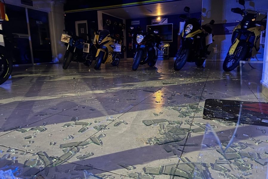 El incidente ocurrió en una agencia de motocicletas Suzuki. El sujeto usó un pedazo de block para romper el cristal principal. Así ingresó al local en supermanzana 25, casi esquina con Suyanchen. Presuntamente tomó una unidad doble propósito de 150 cc. Por ejemplo, este tipo de motos son populares por su versatilidad en calles urbanas y caminos. El valor aproximado alcanza los 70 mil pesos. Un testigo cercano alertó de inmediato.