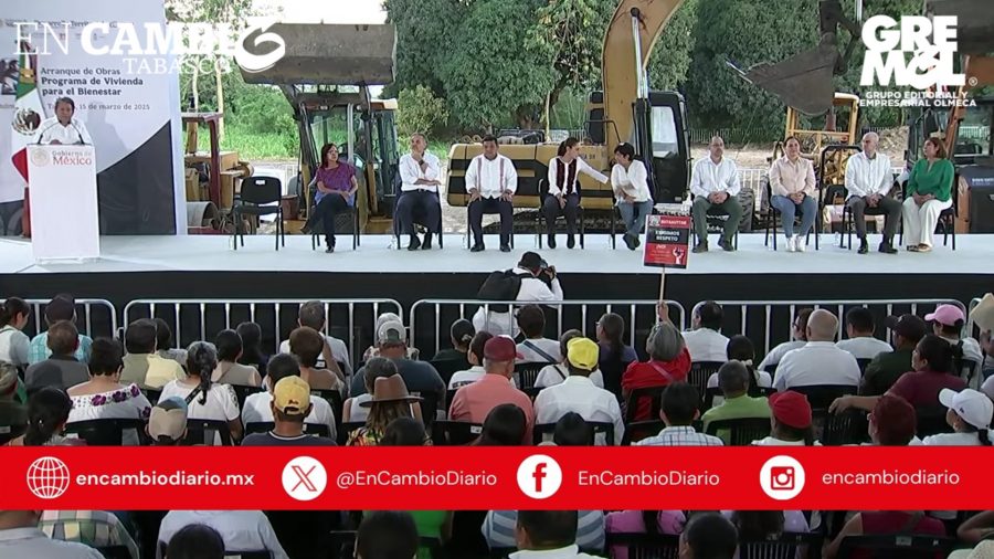 TABASCO.- Javier May Rodríguez, Gobernador de Tabasco, y Claudia Sheinbaum Pardo, presidenta de México, dan arranque al programa de obras de viviendas en Huimanguillo, Tabasco.